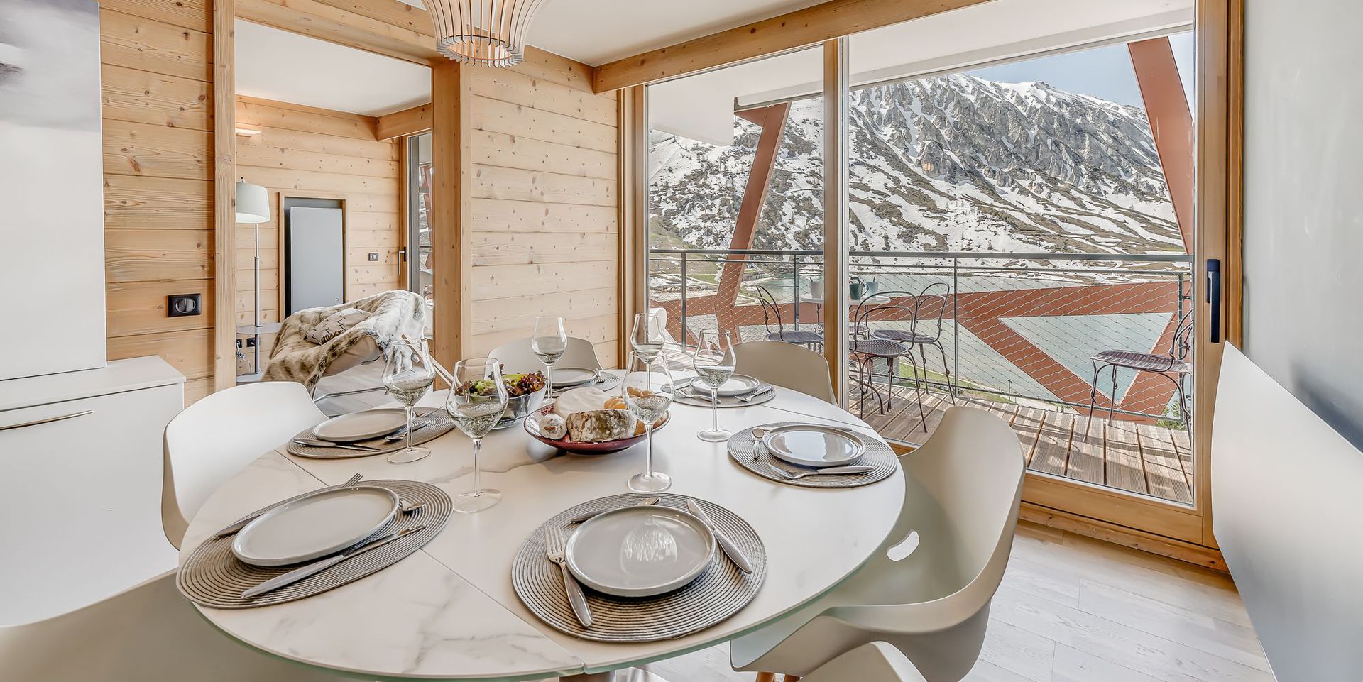 Il possede une balcon expose plein sud, avec vues exceptionnelles et degagees sur le lac naturel de Tignes, les massifs de Toviere et le glacier de la Grande Motte
