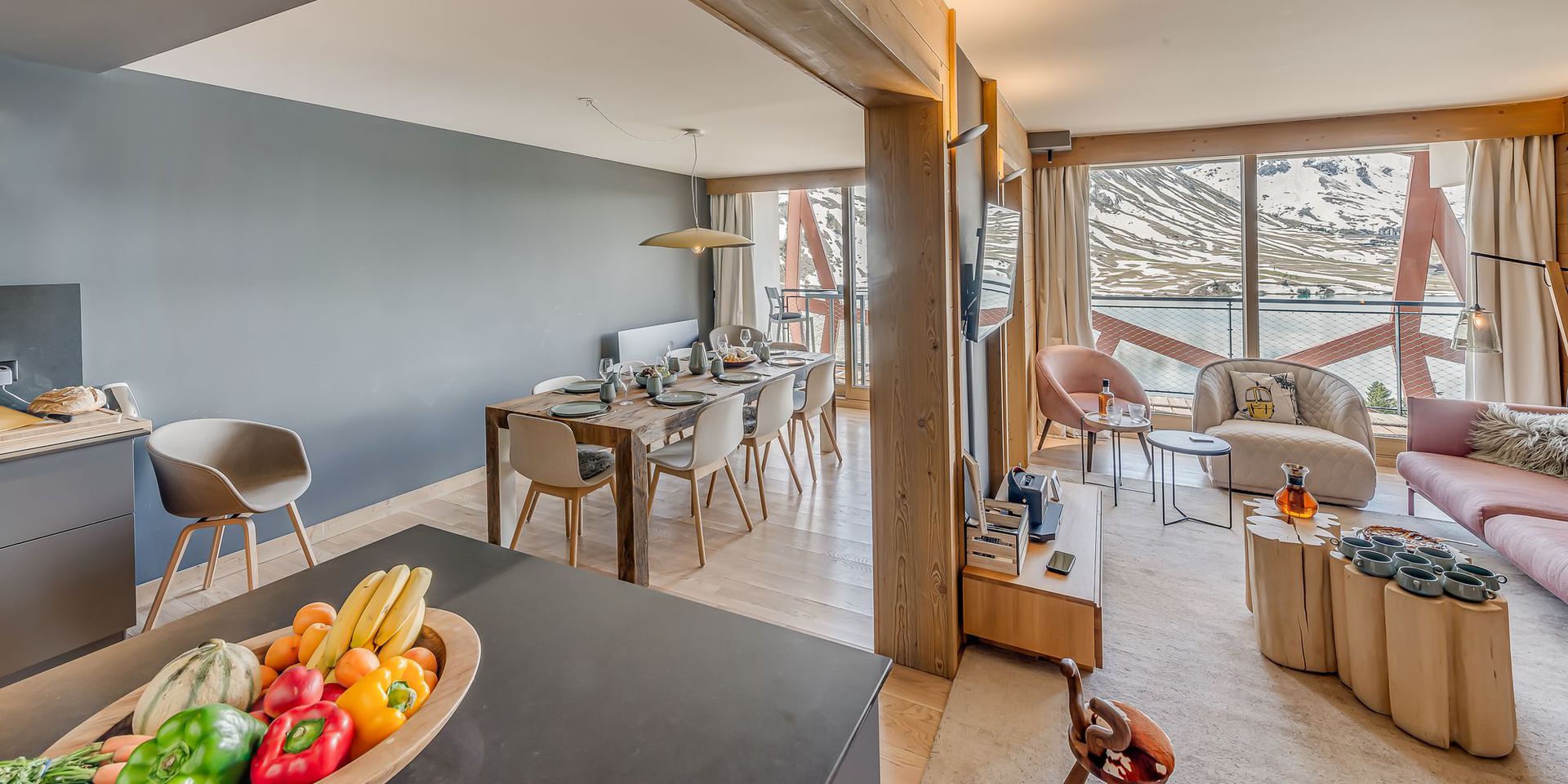Il possede un balcon expose plein sud, avec vues exceptionnelles et degagees sur le lac naturel de Tignes, les massifs de Toviere et le glacier de la Grande Motte