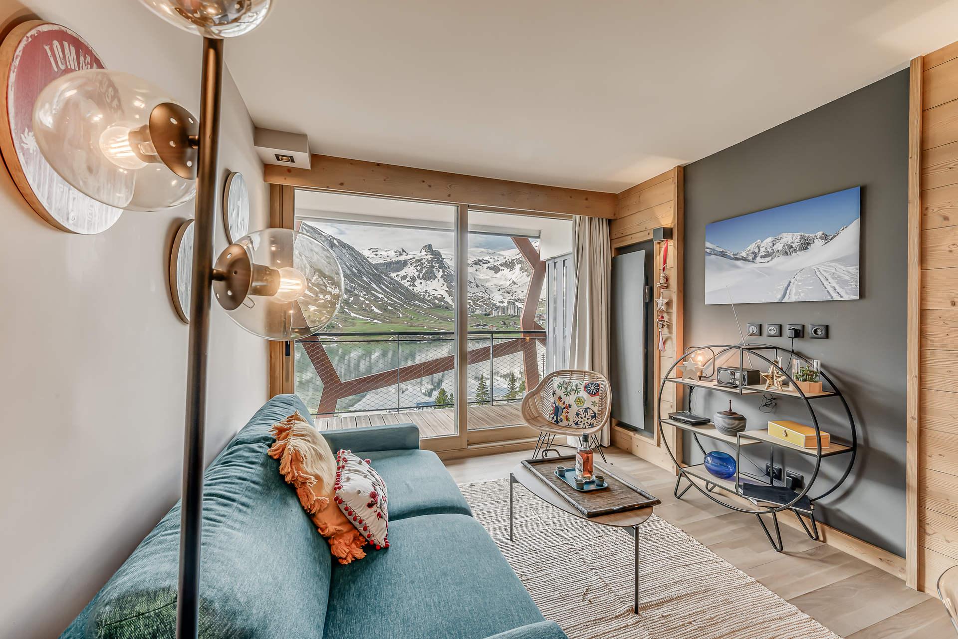 Il possede un balcon expose plein sud, avec vues exceptionnelles et degagees sur le lac naturel de Tignes, les massifs de Toviere et le glacier de la Grande Motte