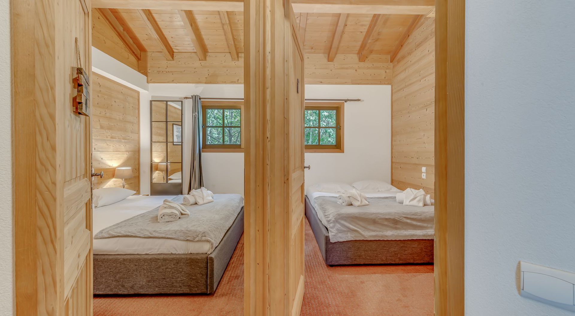 - chambre 1 : suite familiale avec 1 lit double et 2 lits superposes (2 couchages)