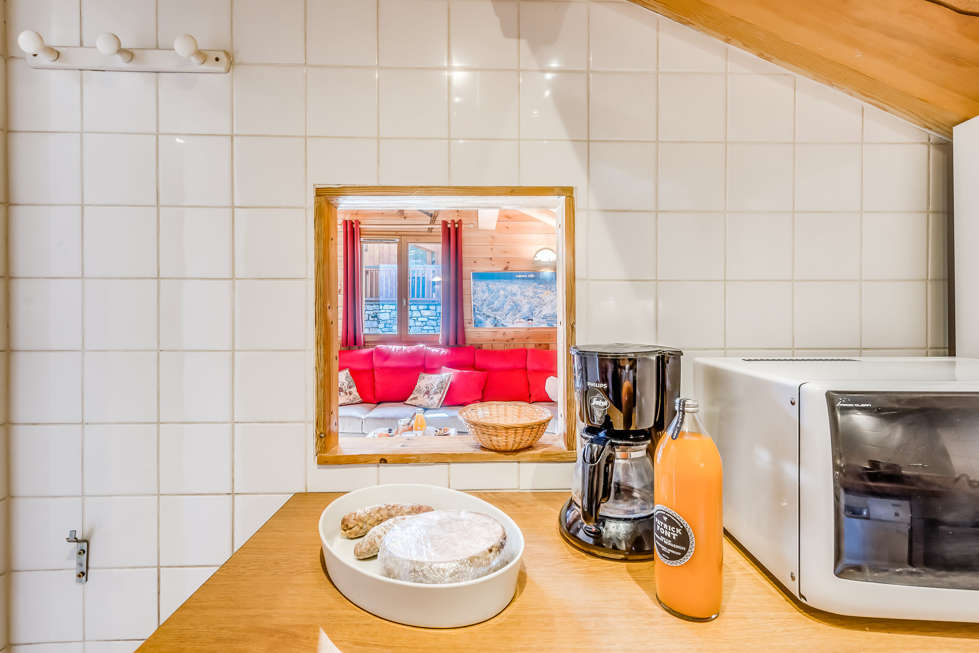 - Cuisine toute equipee avec 4 plaques vitroceramiques, 1 refrigerateur avec partie congelation, 1 lave-vaisselle, 1 four, 1 micro-onde, 1 hotte aspirante, 1 cafetiere thermos, 1 bouilloire et 1 grille-pain.