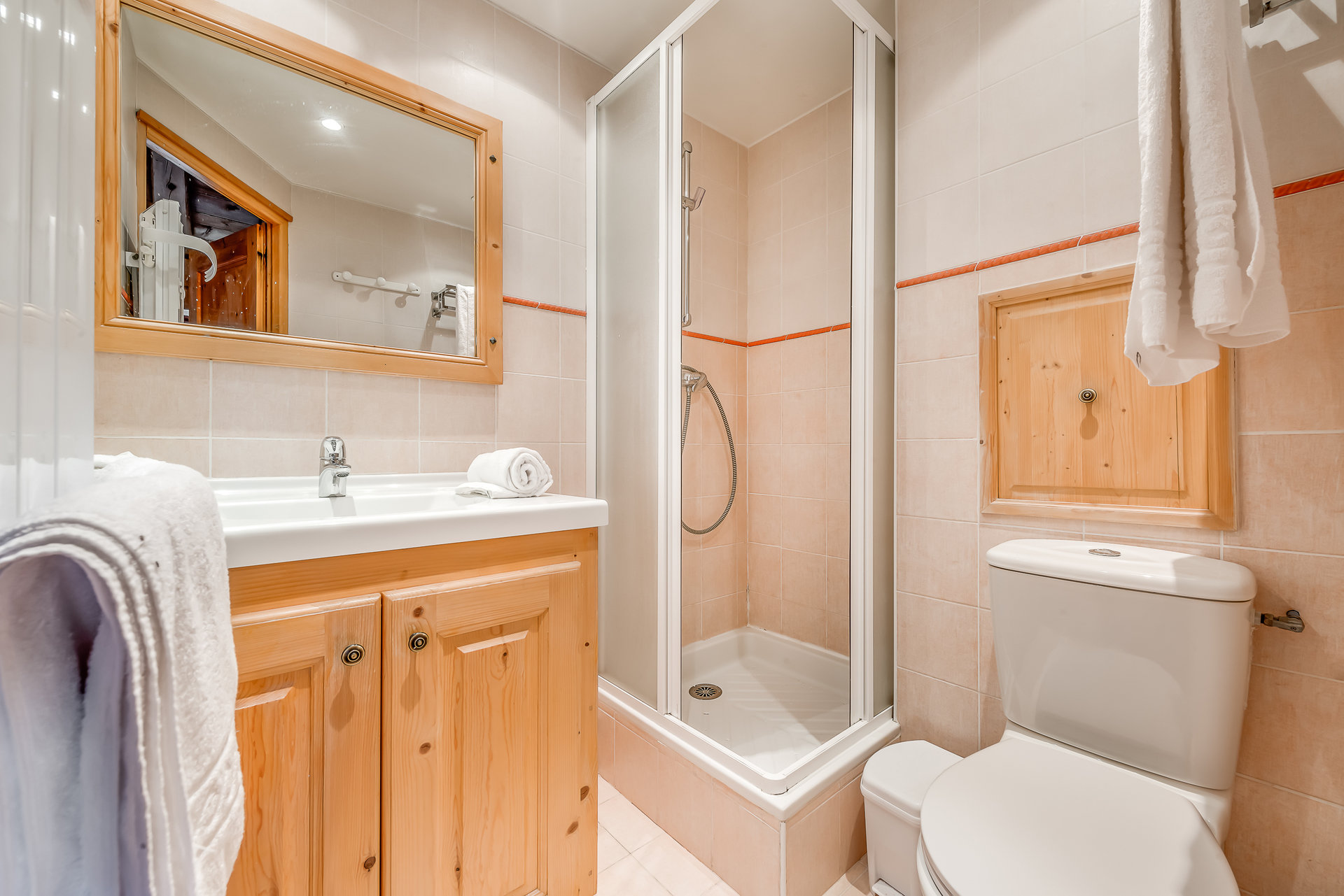 - Salle de douche dans la chambre 4 commune a la chambre 4 et 5 equipee d'une douche, vasque, WC et radiateur seche serviette.