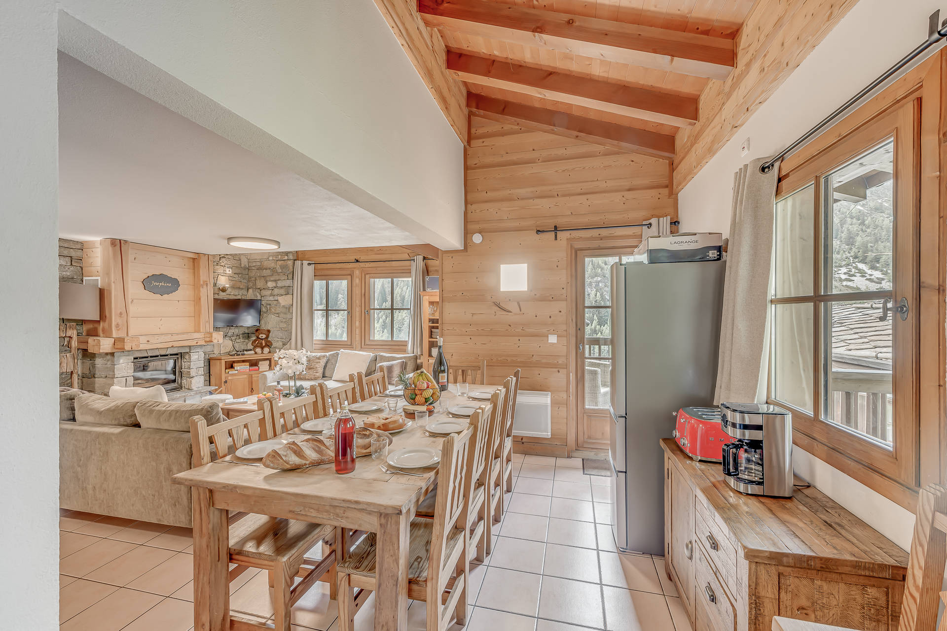 Le chalet Josephine - 108m2 - 6 pieces 10 personnes. Gamme CHALET dispose de 5 chambres chacune avec salle de bain, d'un jacuzzi, il est situe a 200 metres des remontees mecaniques et du centre du village par un ascenseur qui relie le quartier du Belvedere ou se situe le chalet au centre du village (commerces, bars, restaurants...) et aux remontees mecaniques (telecabine des Brevieres). Il beneficie d'une vue epoustouflante sur les montagnes et les pistes.