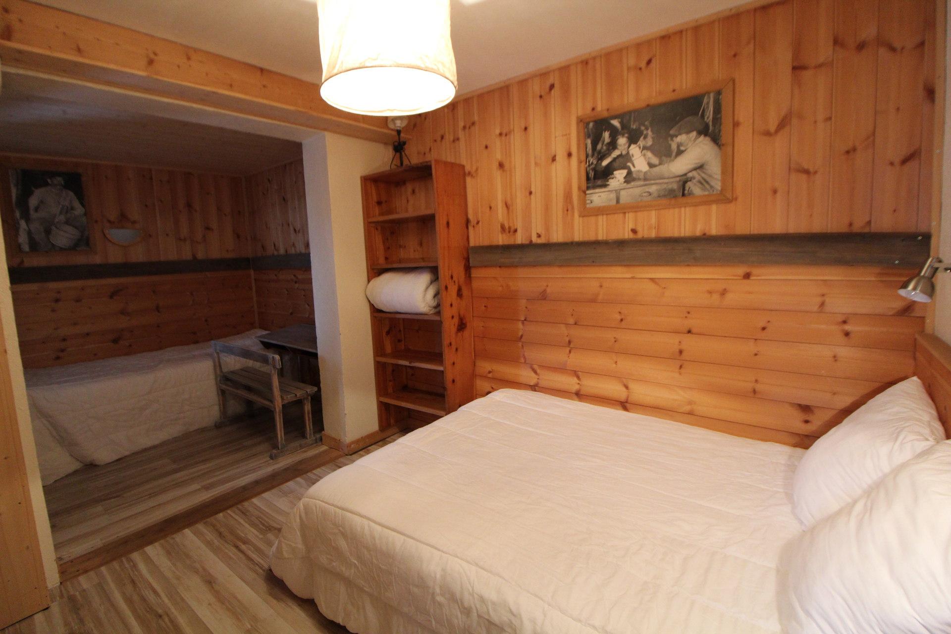 1 grand lit et 1 lit simple, 1 pupitre d'ecolier avec 1 banc, de nombreux rangements.