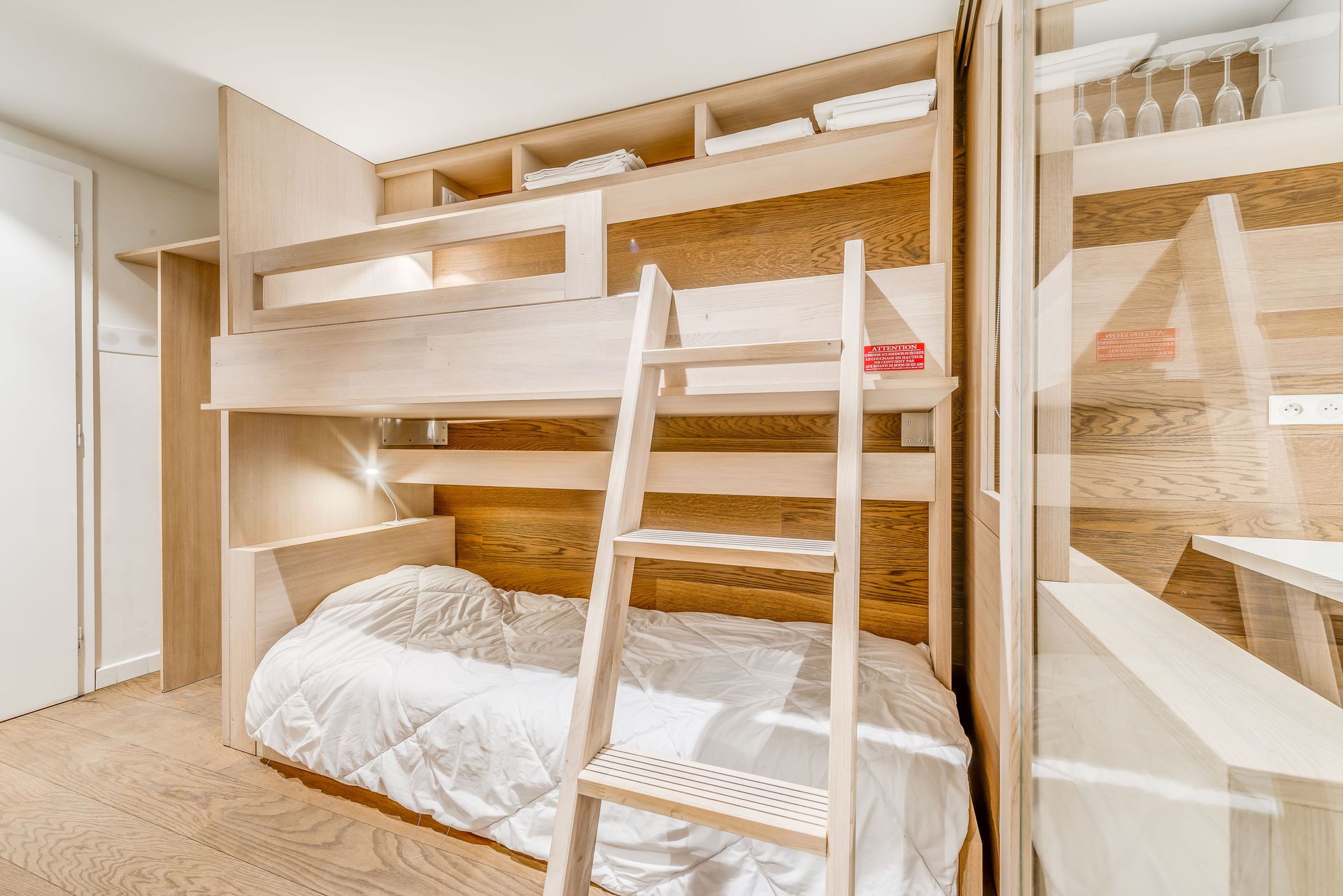 - 1 salon d'entree avec 1 lit simple et un lit superpose rabattable :