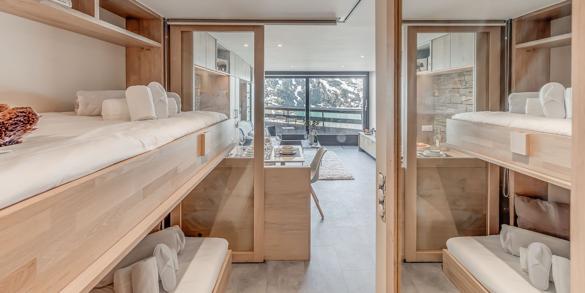 - Entree : 2 lits superposes rabattables. Cloisons coulissantes pour individualiser