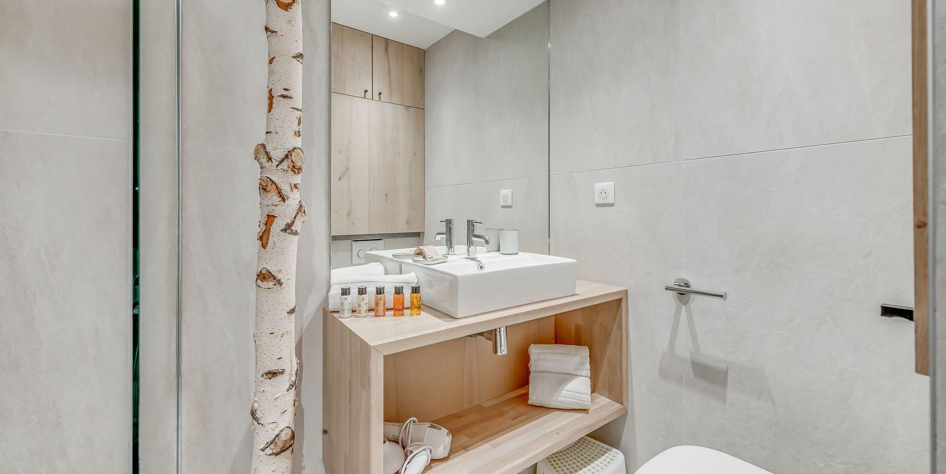 - Salle de bain avec cabine de douche, lavabo, une porte de separation qui donne acces a 1 WC et un lave-linge.