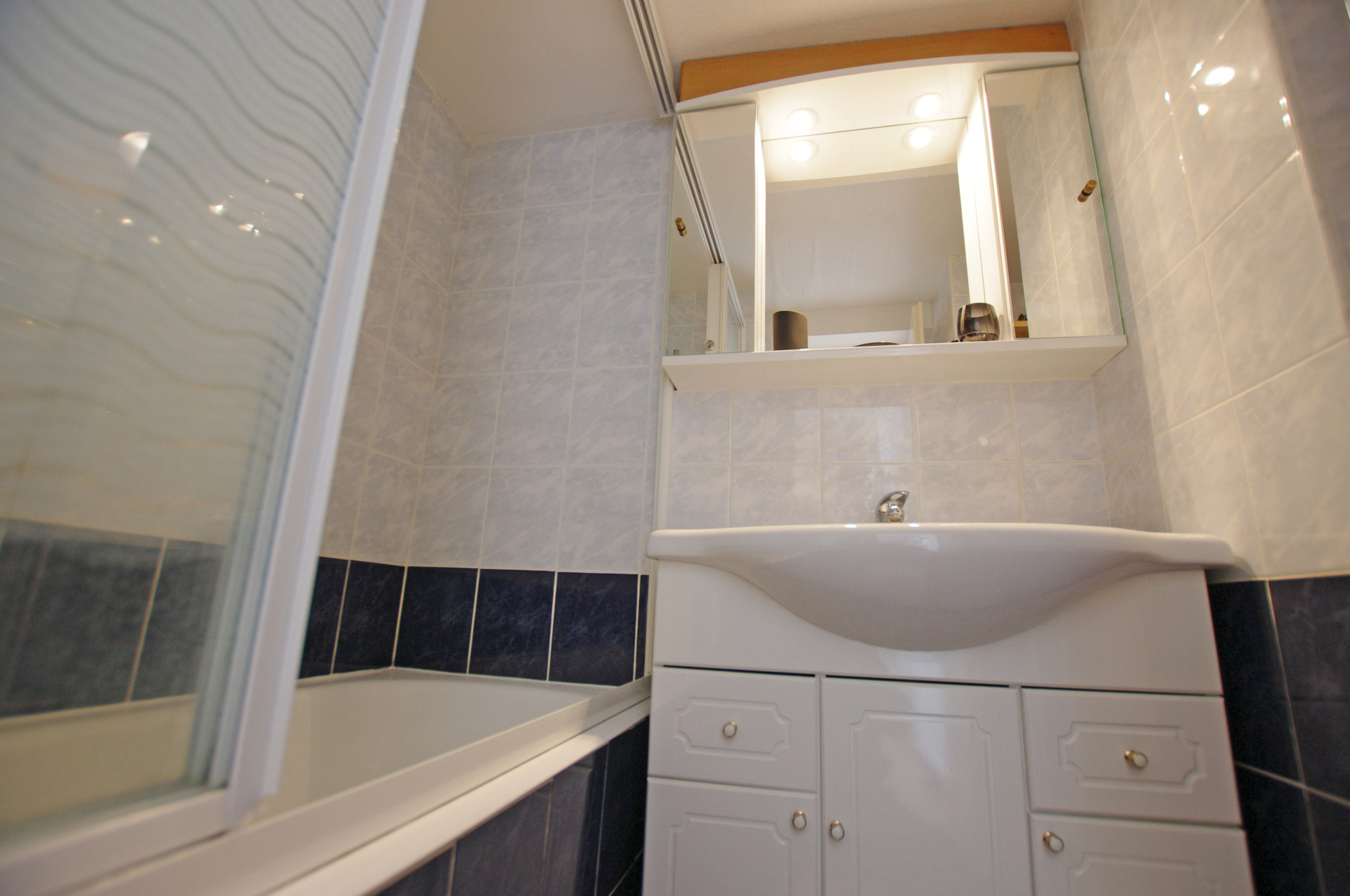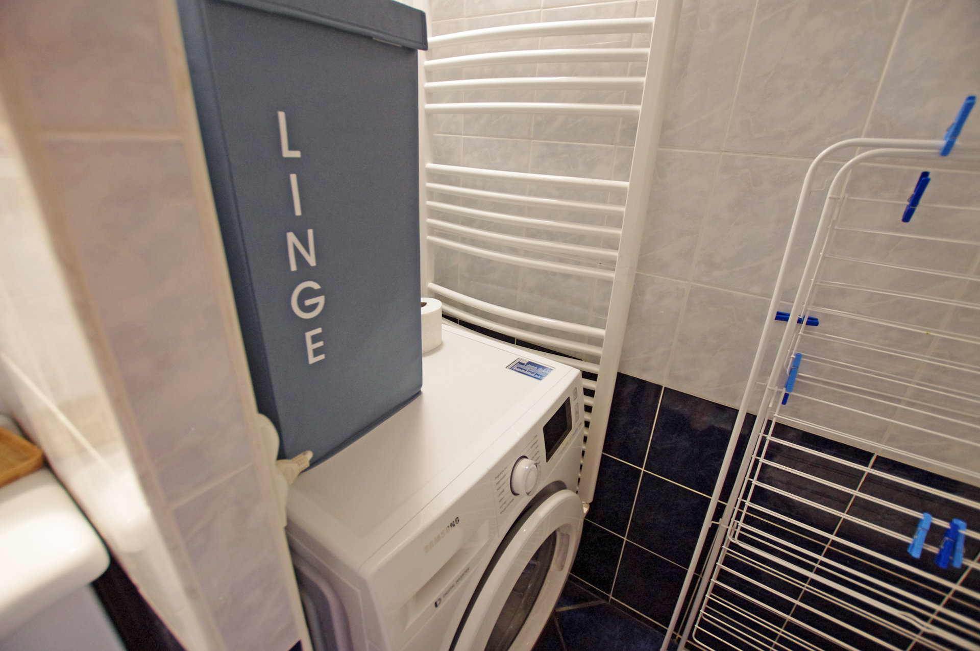 - Salle de bain avec baignoire, lavabo et WC - 1 Lave-linge - 1 radiateur seche-serviette.
