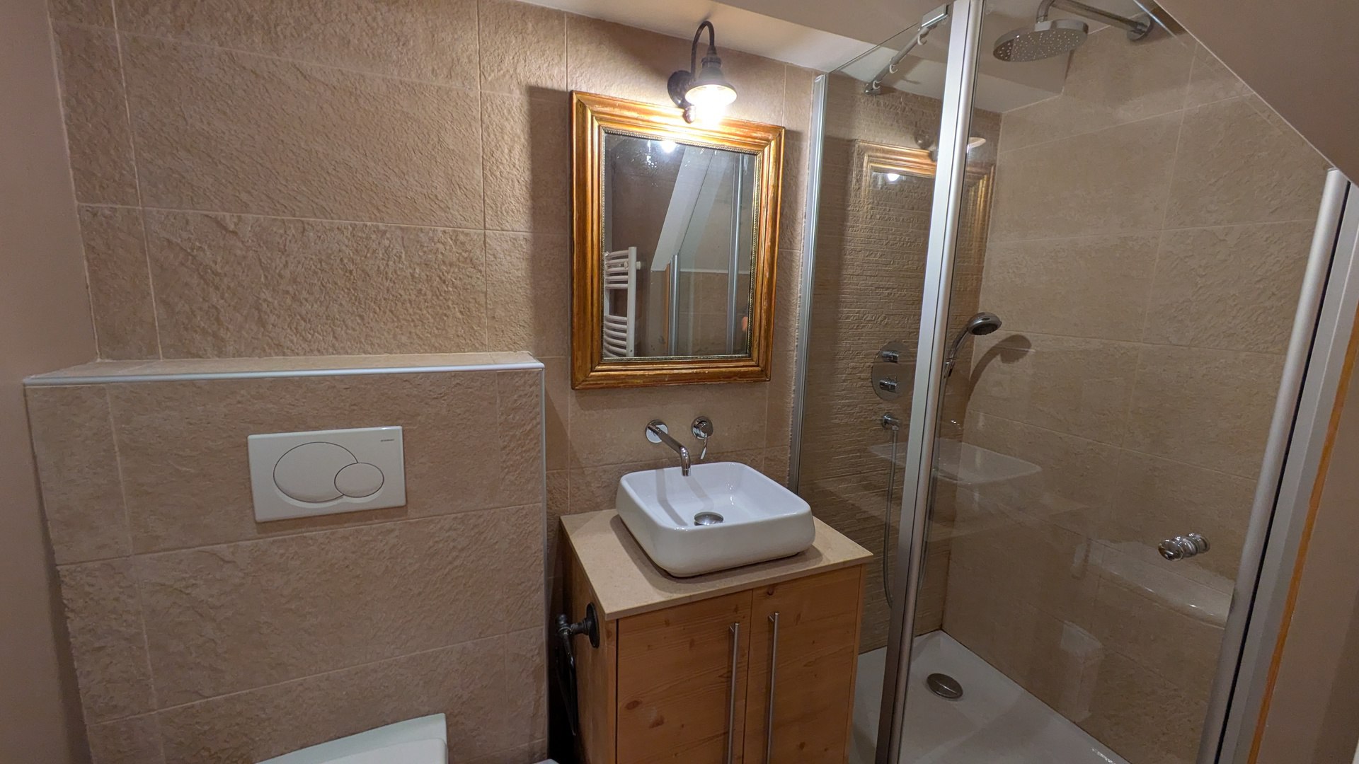 Demi-chalet (partie superieure)- Surface de 110 m2 - Situe au 1er etage et combles - Orientation sud