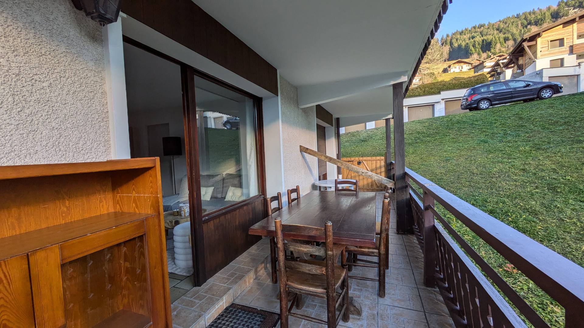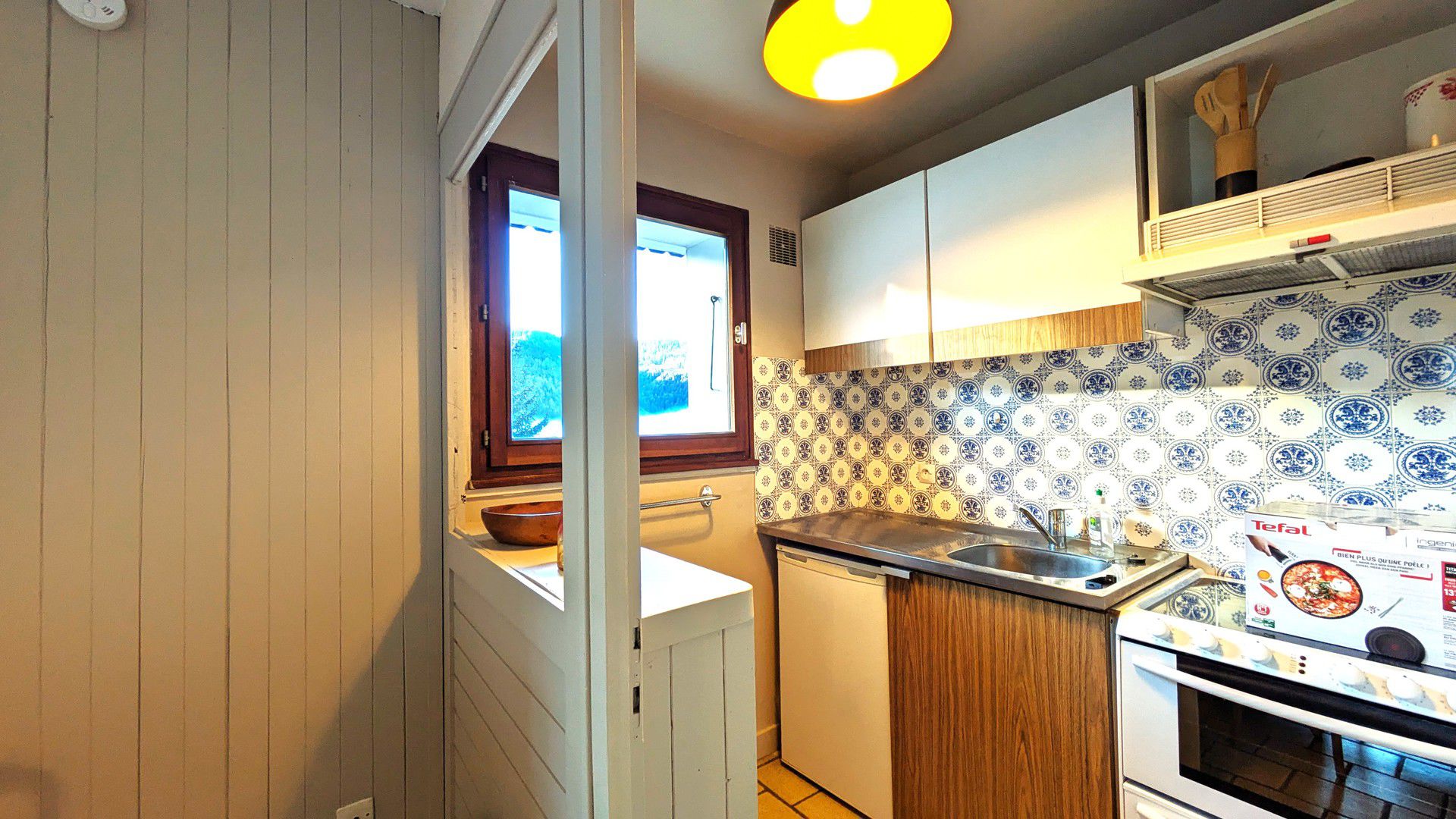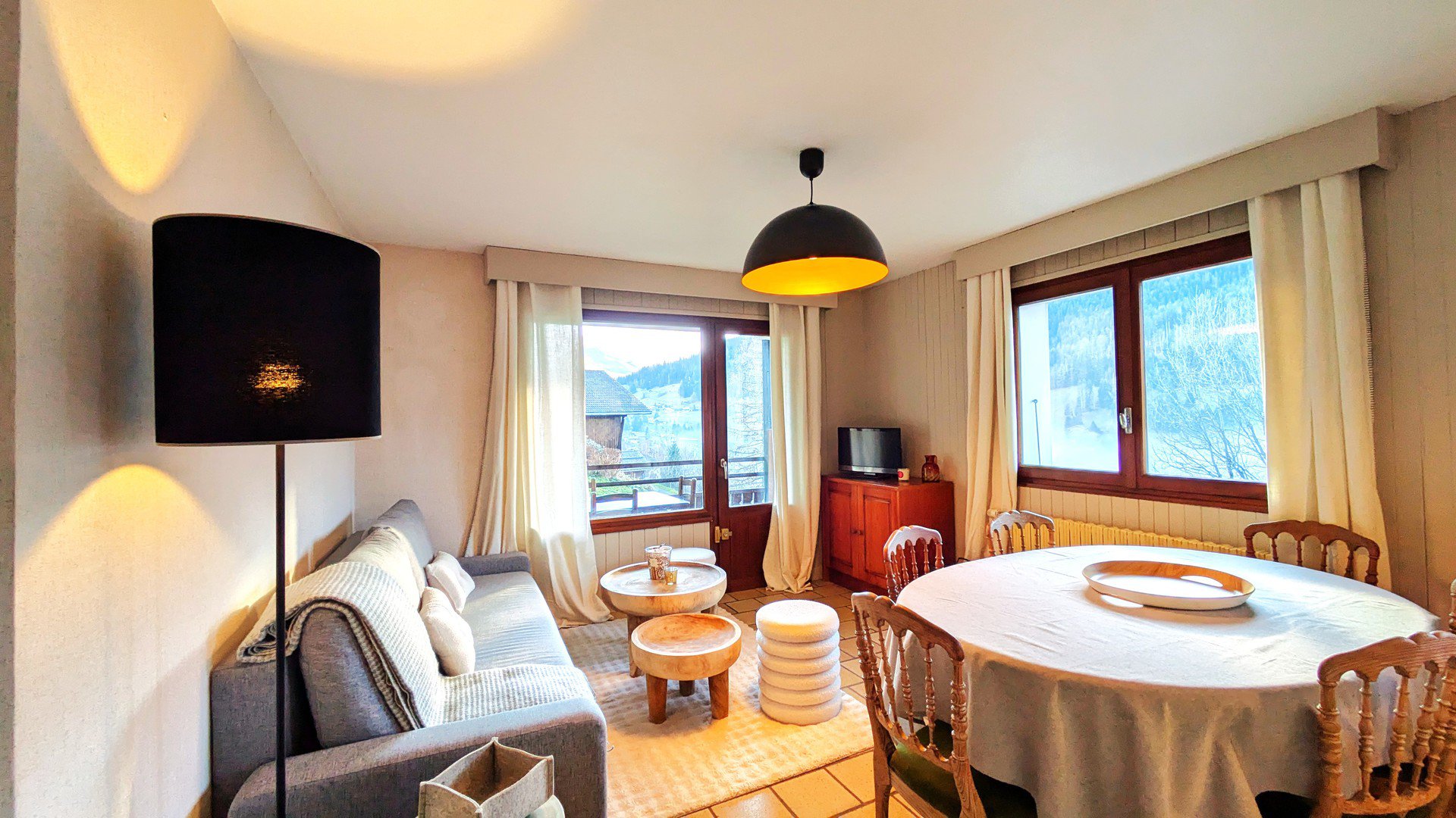 Entrée/Hall (9,28 m²) - Chambre 1 (9.28 m²) : 2 x2 lit superposés en 90cm, placards, fenêtre Est vue résidences - Chambre 2 (9.69 m²) : 1 lit 160 cm, placard - penderie, fenêtre Ouest vue montagnes- Salle de bain (3.82 m²) : baignoire, lavabo, miroir, radiateur sèche-serviettes et lave-linge - WC - Séjour (15.67 m²) : Coin repas avec table et chaises pour 6 - Coin salon avec canapé, assises, table basse, télévision, baie vitrée + porte-fenêtre accès terrasse sud et balcon Ouest, vue massif de l'Etale et Beauregard - Coin cuisine semi-ouverte (3.02 m²) : réfrigérateur avec partir freezer, évier, cuisinière Trio avec four, plaques de cuisson et lave-vaisselle, machine à café Nespresso, bouilloire, grille-pain, appareil à raclette, appareil à fondue.