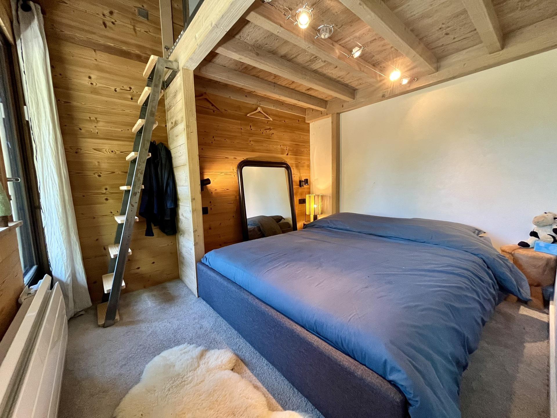 Etage acces par escaliers: Chambre 2 (7.49m2): 1 lit double 140 cm, fenetre, rangement - Chambre 3 / coin nuit (4.86m2 dont 1.76m2 <1.80 m): 1 lit double 140cm, rangements, donne sur sejour avec rideaux - Petite salle d'eau avec douche, lavabo et WC.