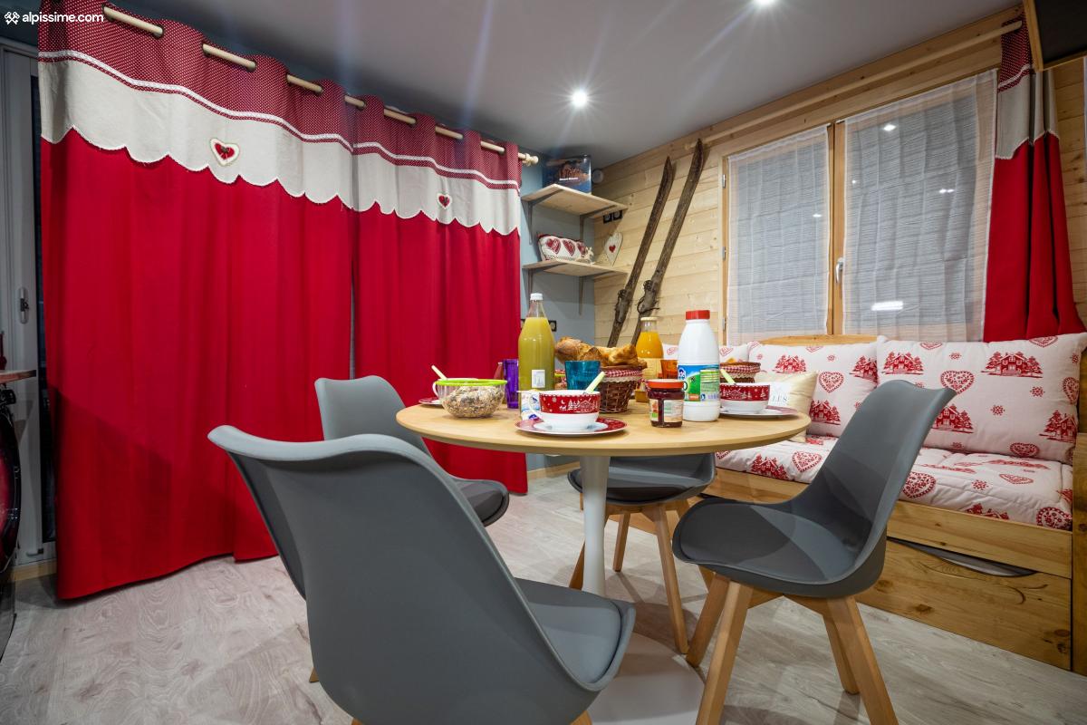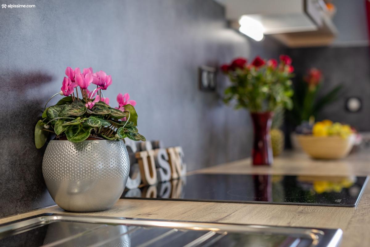 - Une superbe terrasse de 20m2 avec vue sur les Aiguilles d’Arves et les pistes de ski ;