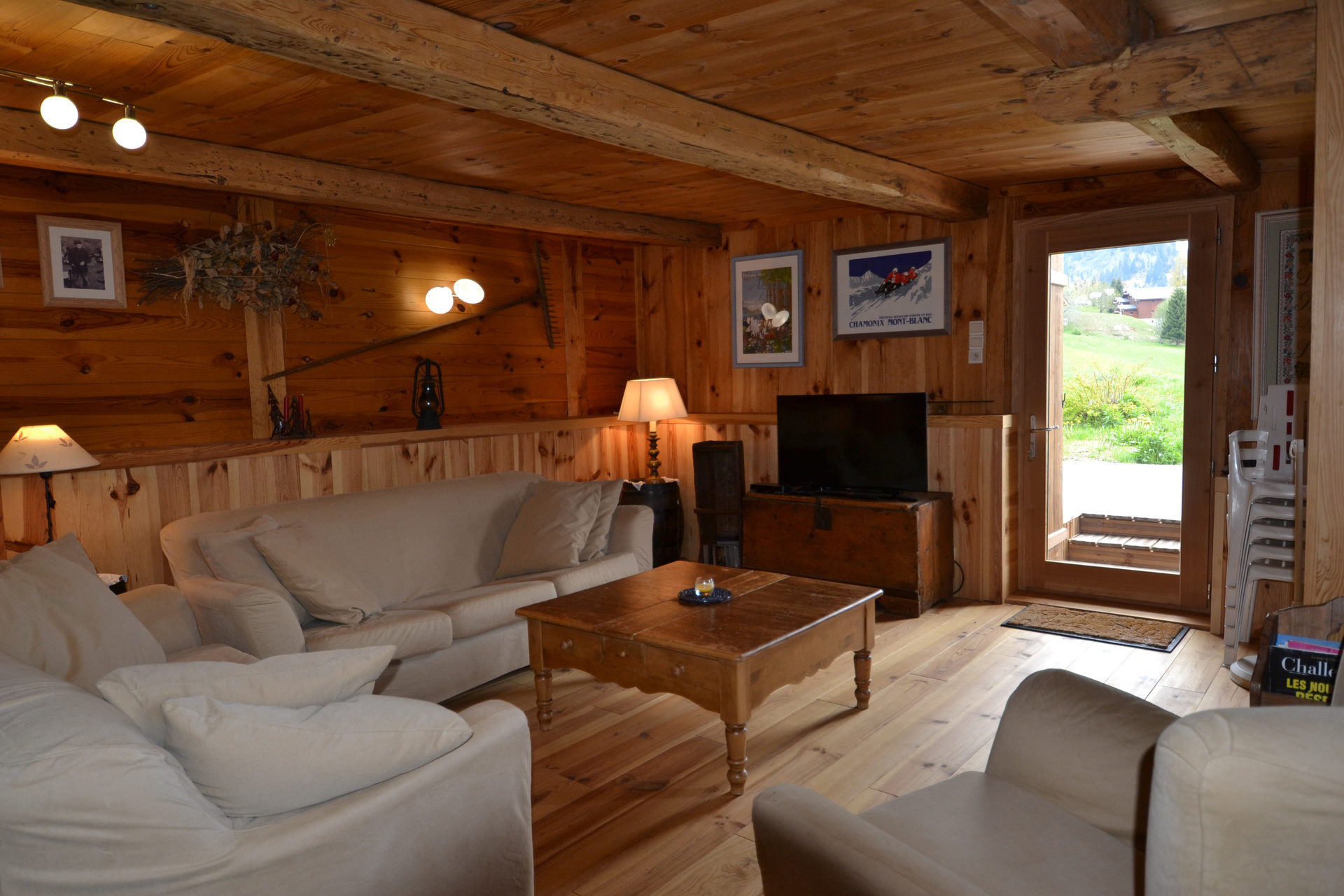 Appartement de 145m2 dans une ferme renovee, pour huit personnes. Situe en rez de chaussee, vous apprecierez sa grande terrasse Est, et sa vue exceptionnelle sur le Mont Charvin et la vallee.