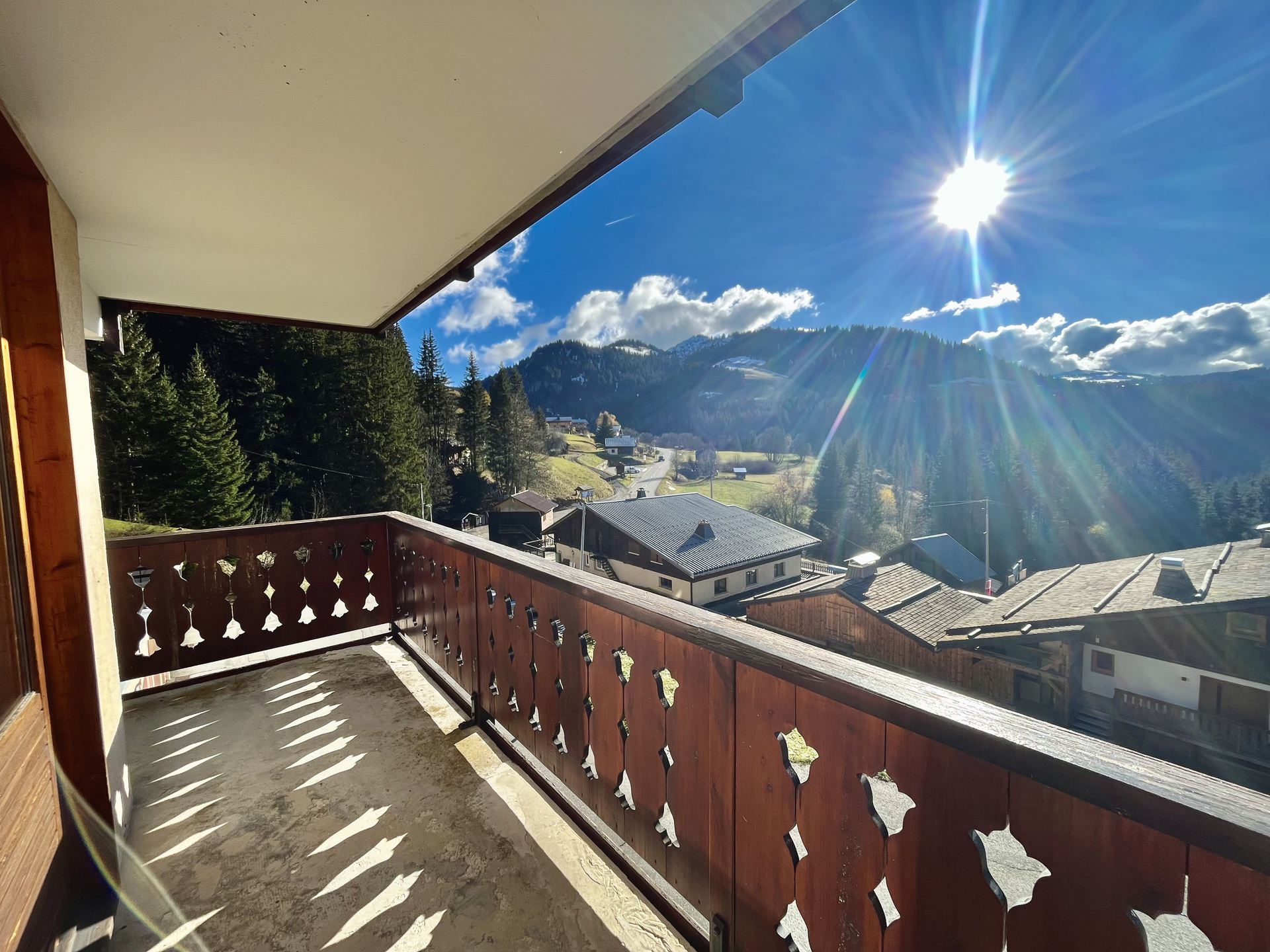 Appartement de deux pieces pour six personnes, au premier etage, il est d' une surface de 37 m2 avec un grand balcon d'angle SUD/EST offrant la vue sur le Mont Charvin et la vallee.