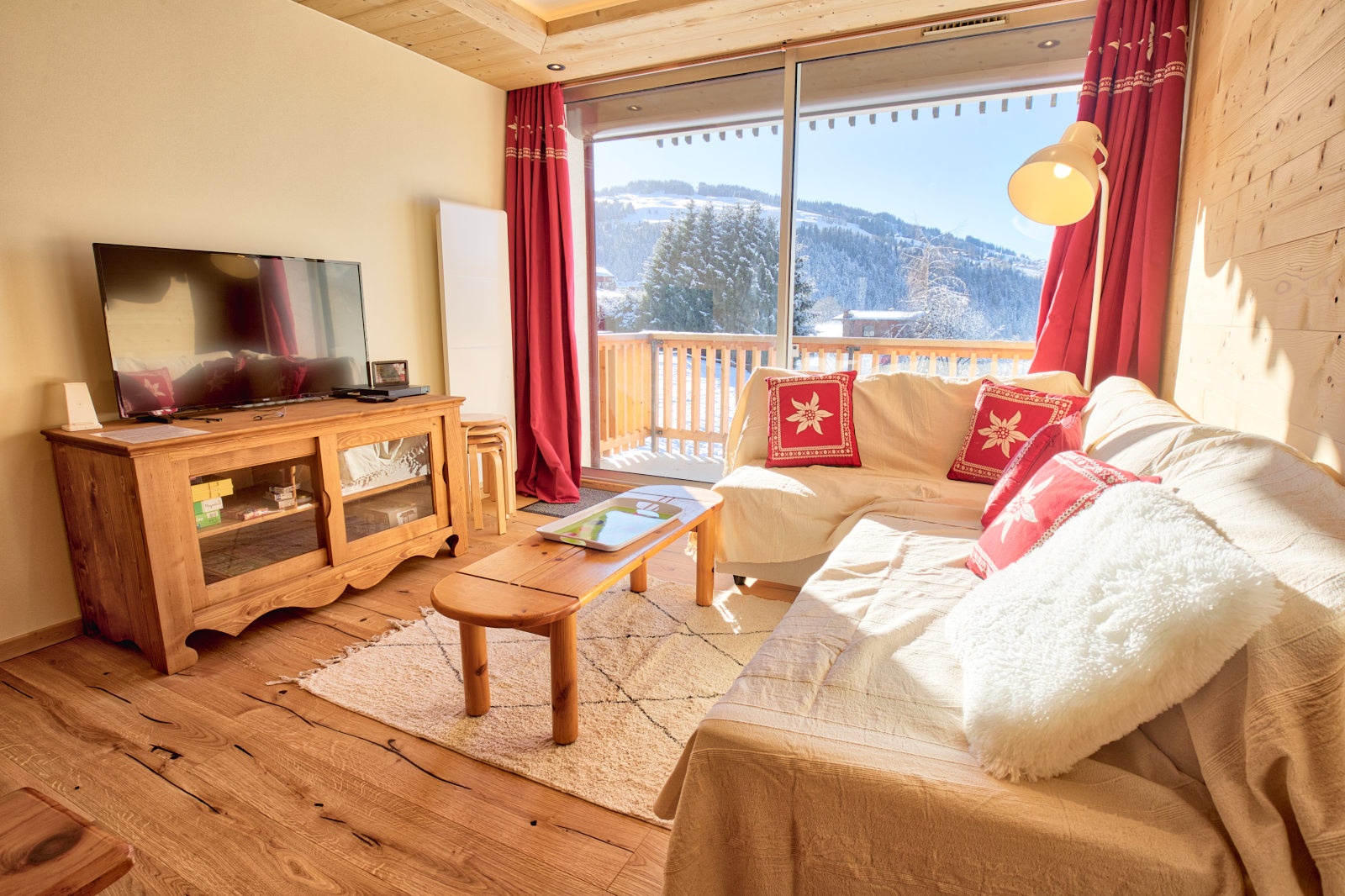 Appartement de 48 m² entièrement rénové pour six voyageurs dans une résidence au pied des pistes de ski. Situé au 2ème étage, vous allez apprécier le balcon en exposition sud offrant une vue dégagée sur le village, le Mont Charvin et la vallée.