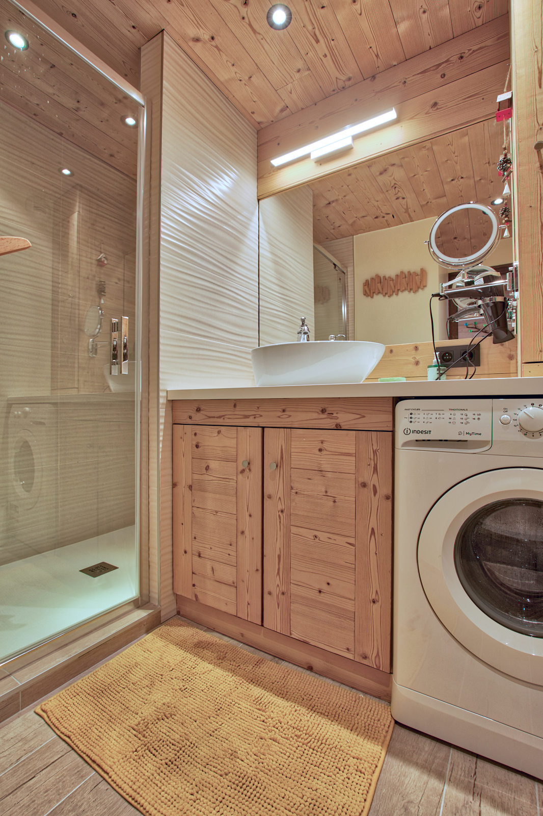 - Salle de bains avec douche, sèche-serviettes & machine à laver