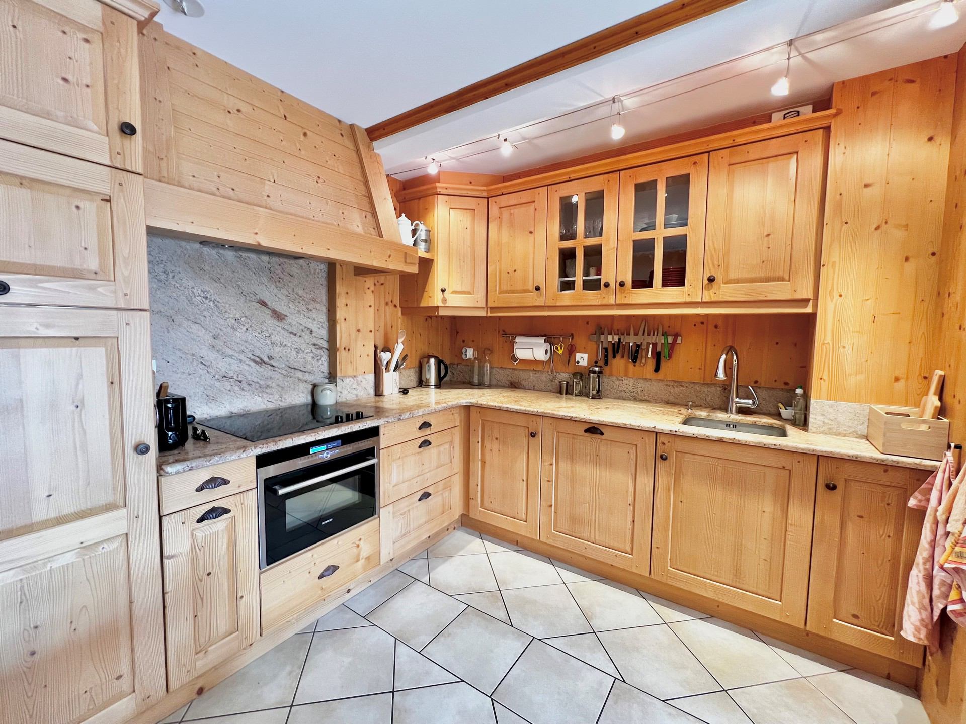 - Cuisine equipee avec salle a manger ouverte sur une premiere terrasse en exposition sud-est avec vue sur les montagnes et le village (four micro-onde, refrigerateur, plaque vitroceramique 3 foyers, lave-vaisselle, hotte).