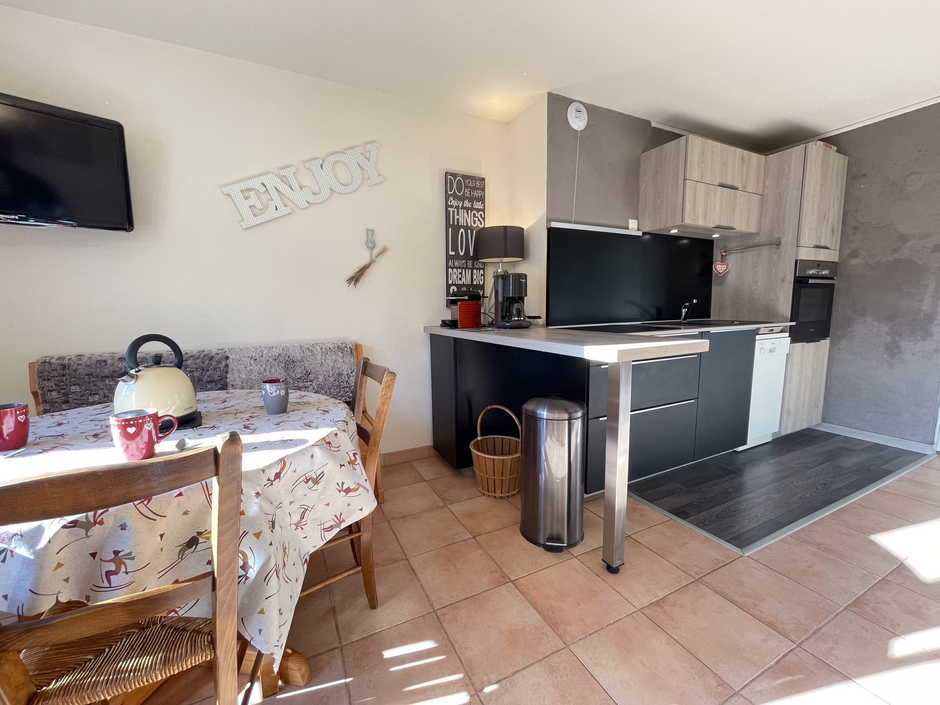 NOTRE AVIS : Appartement fonctionnel et proche du centre du village situé dans un secteur calme et ensoleillé, idéal pour des vacances en famille ou entre amis.