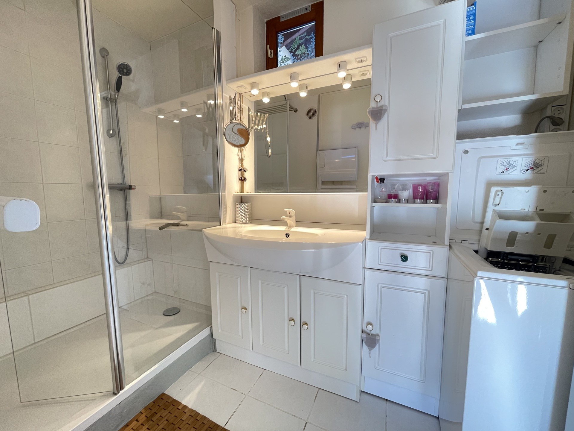 - Une salle d'eau avec douche et lave linge séchant