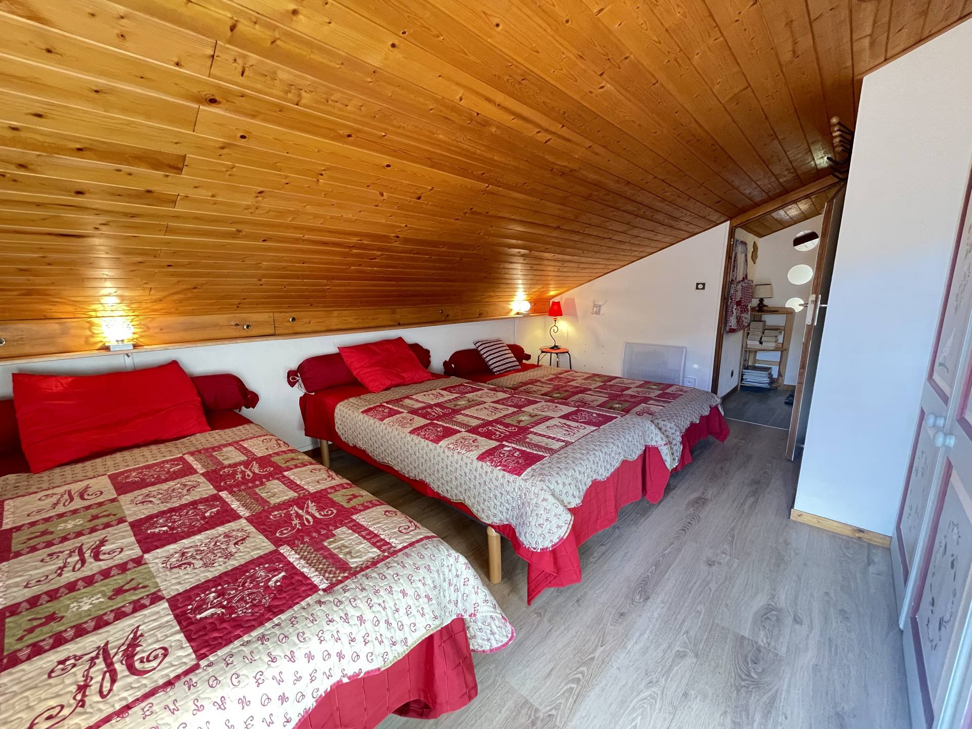 - Une chambre avec un lit double (140) + un lit simple (90)