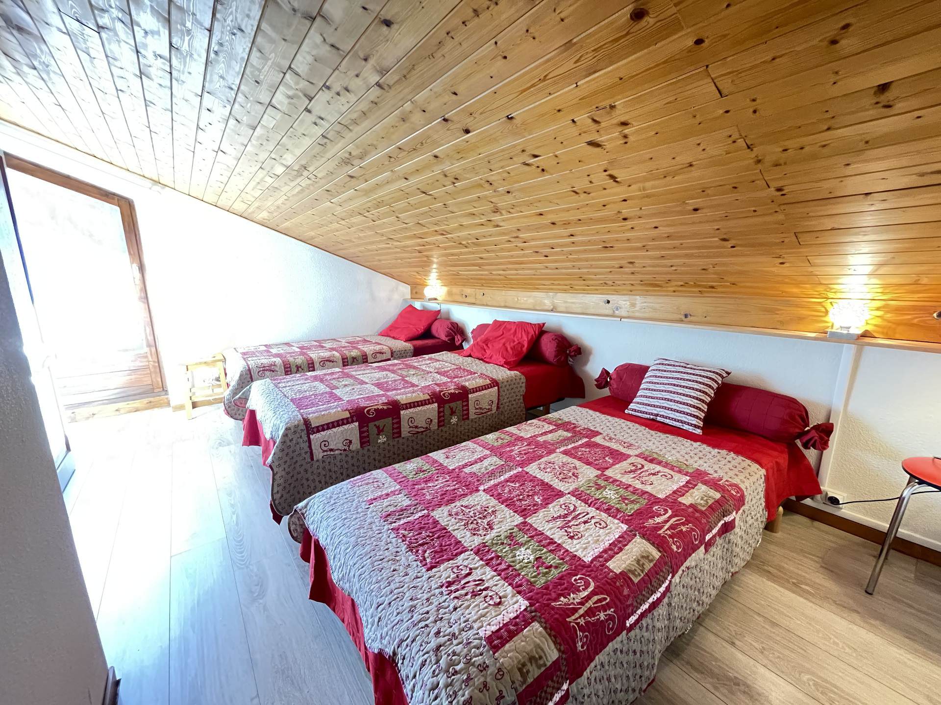 - Une seconde chambre avec trois lits simples (3*90) et son accès au second balcon