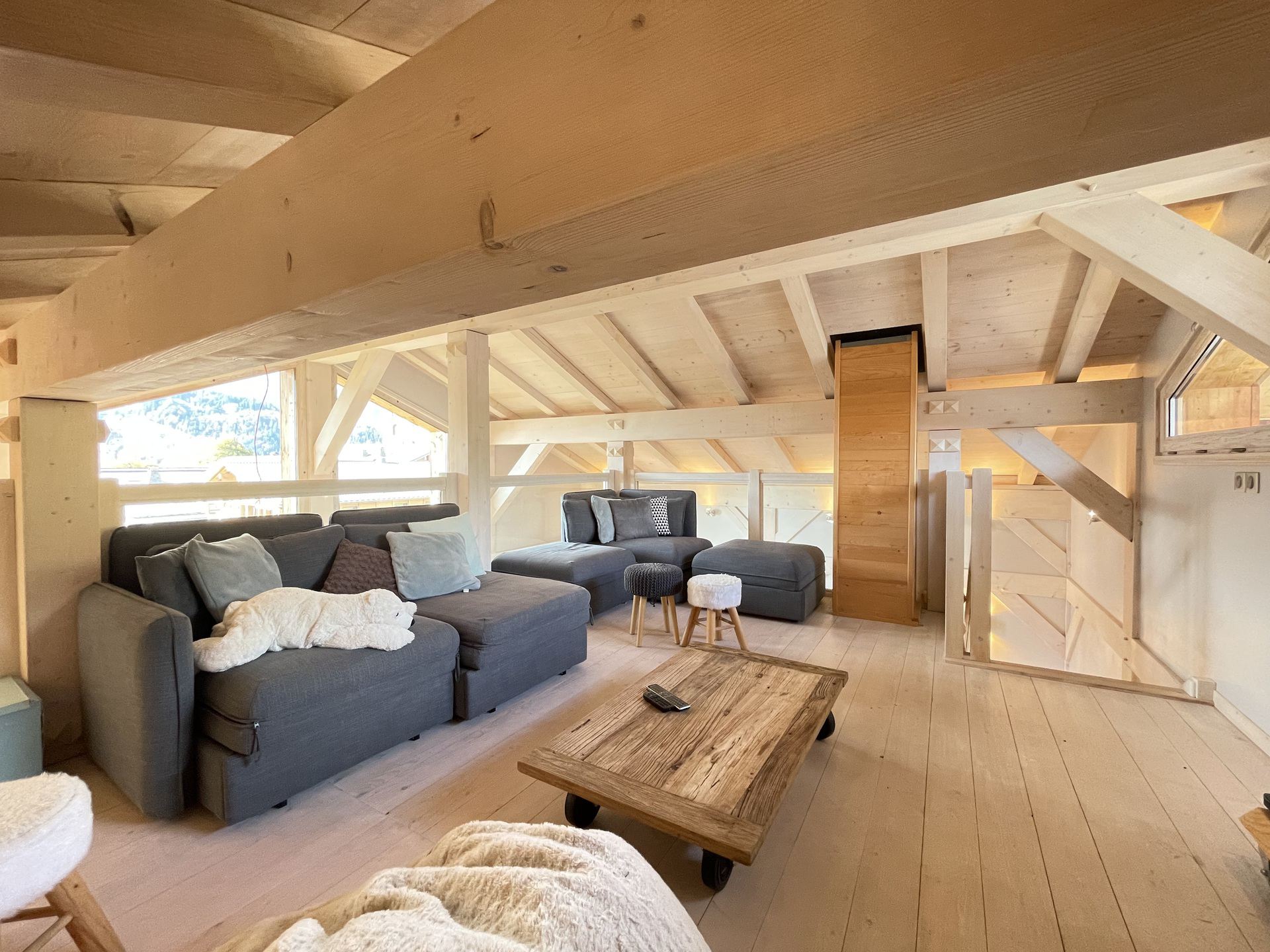 *1ER ETAGE : une cuisine ouverte sur sejour avec plaques vitroceramiques, four, micro-ondes, lave-vaisselle, refrigerateur, cafetiere Nespresso ; spacieux sejour avec canape d'angle, televiseur 126cm et CHEMINEE. La piece s'ouvre sur un grand balcon d'angle en exposition SUD/OUEST offrant une vue exceptionnelle sur le Mont Charvin et le village.
