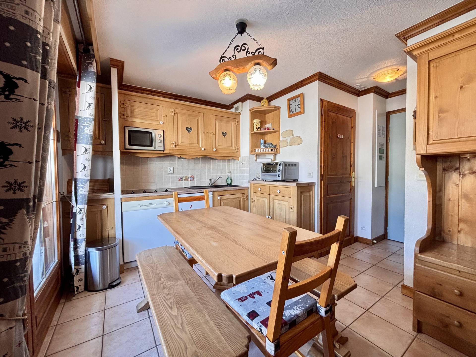 Au pied des pistes du mont Rond, a 1350m, appartement pour quatre personnes de 21m2 en rez de chaussee avec un balcon en exposition est, vue sur le depart des pistes et la vallee.