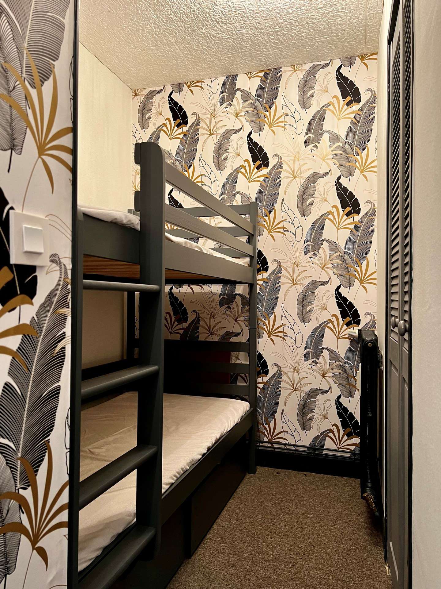 - Couchages : un coin montagne avec lits superposes (2x90), sejour avec un canape-lit deux personnes (160). Literie equipee de couettes.