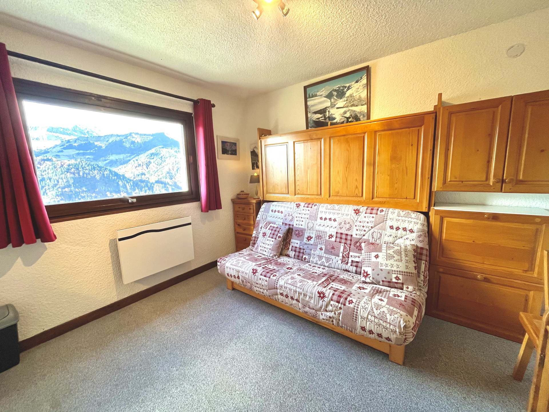 Au pied des pistes du village, studio cozy de 14m² situé au 6ème étage en exposition OUEST avec vue sur le Mont Charvin, les Aravis et la vallée. Skis aux pieds et proche de toutes commodités.