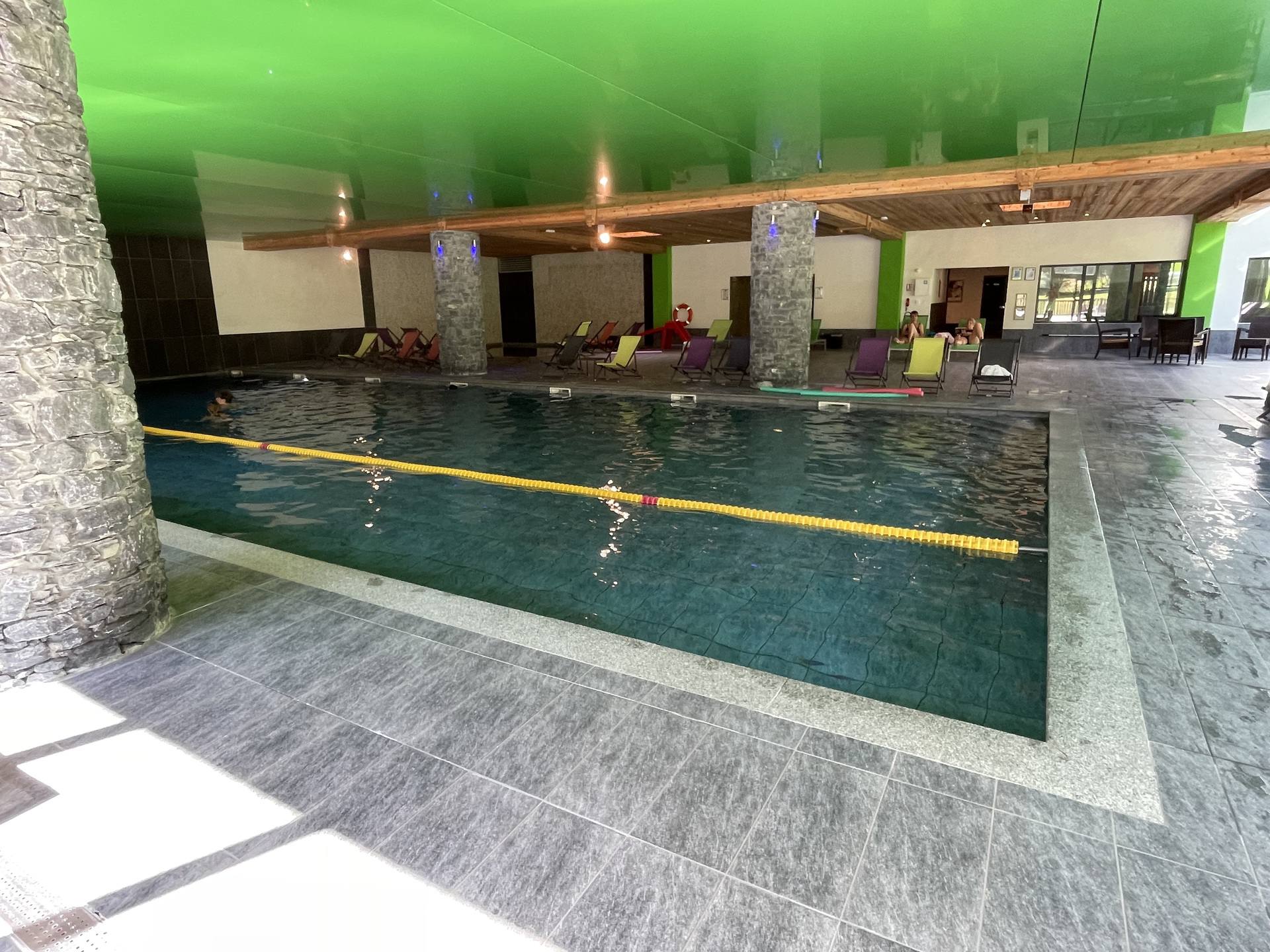 Accès à tout l'espace bien être : Grande piscine couverte chauffée, sauna, hammam, bain bouillonnants, bain de soleil et salle de sport.