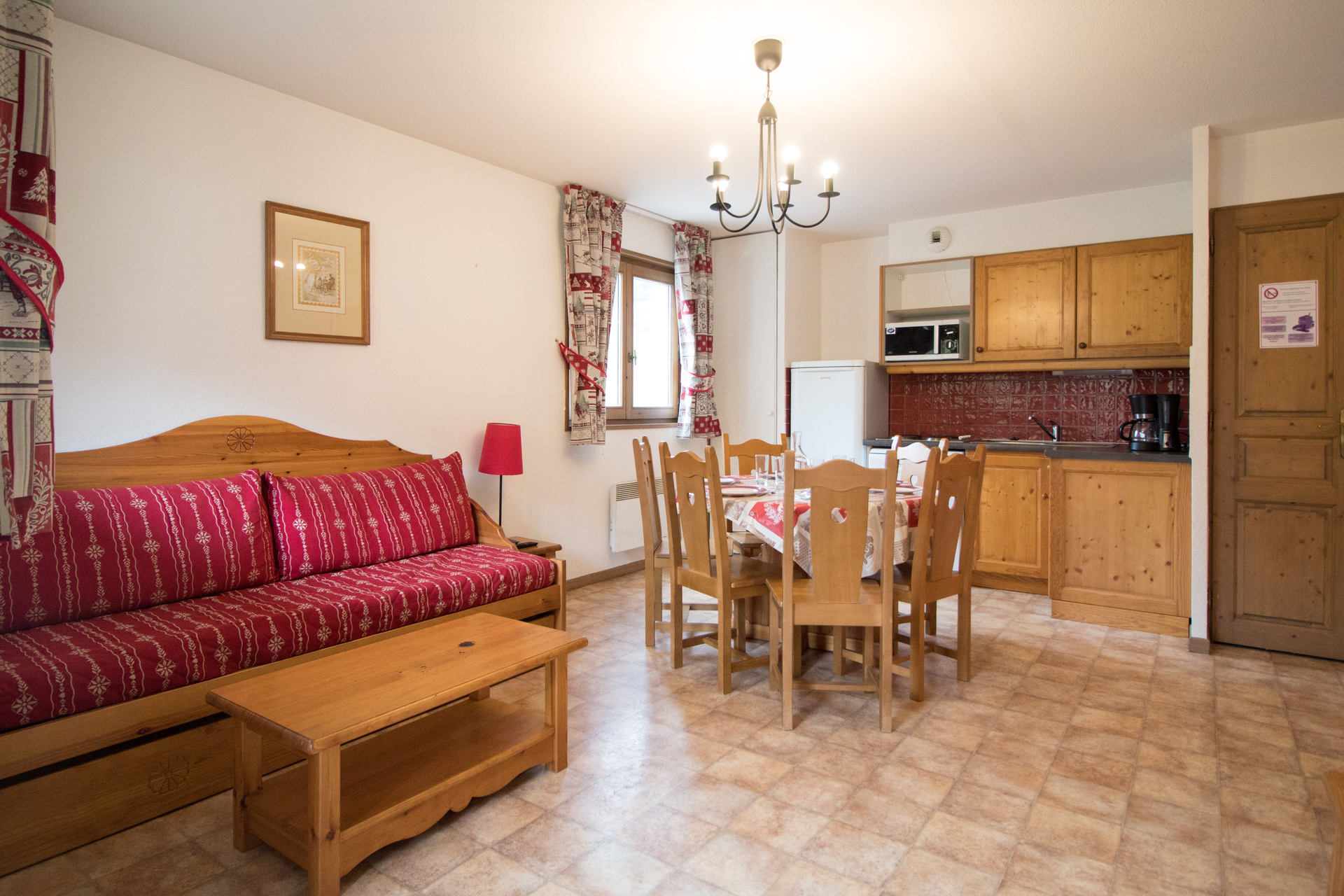 Sejour avec kitchenette equipee : micro-onde/grill, refrigerateur, 4 plaques electriques, lave vaisselle, cafetiere electrique, television.