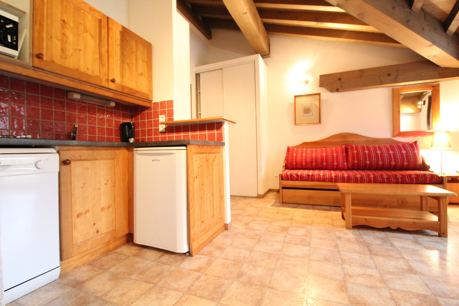Sejour avec kitchenette equipee : micro-onde/grill, refrigerateur, 4 plaques electriques, lave vaisselle, cafetiere electrique, television.