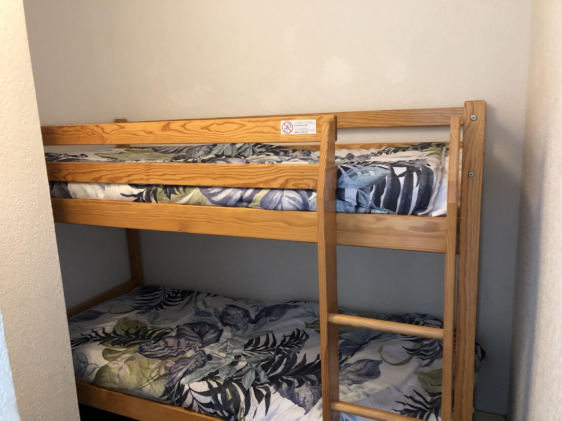 Coin montagne avec 1 lit superposes (le couchage en hauteur ne convient pas aux enfants de moins de 6 ans).