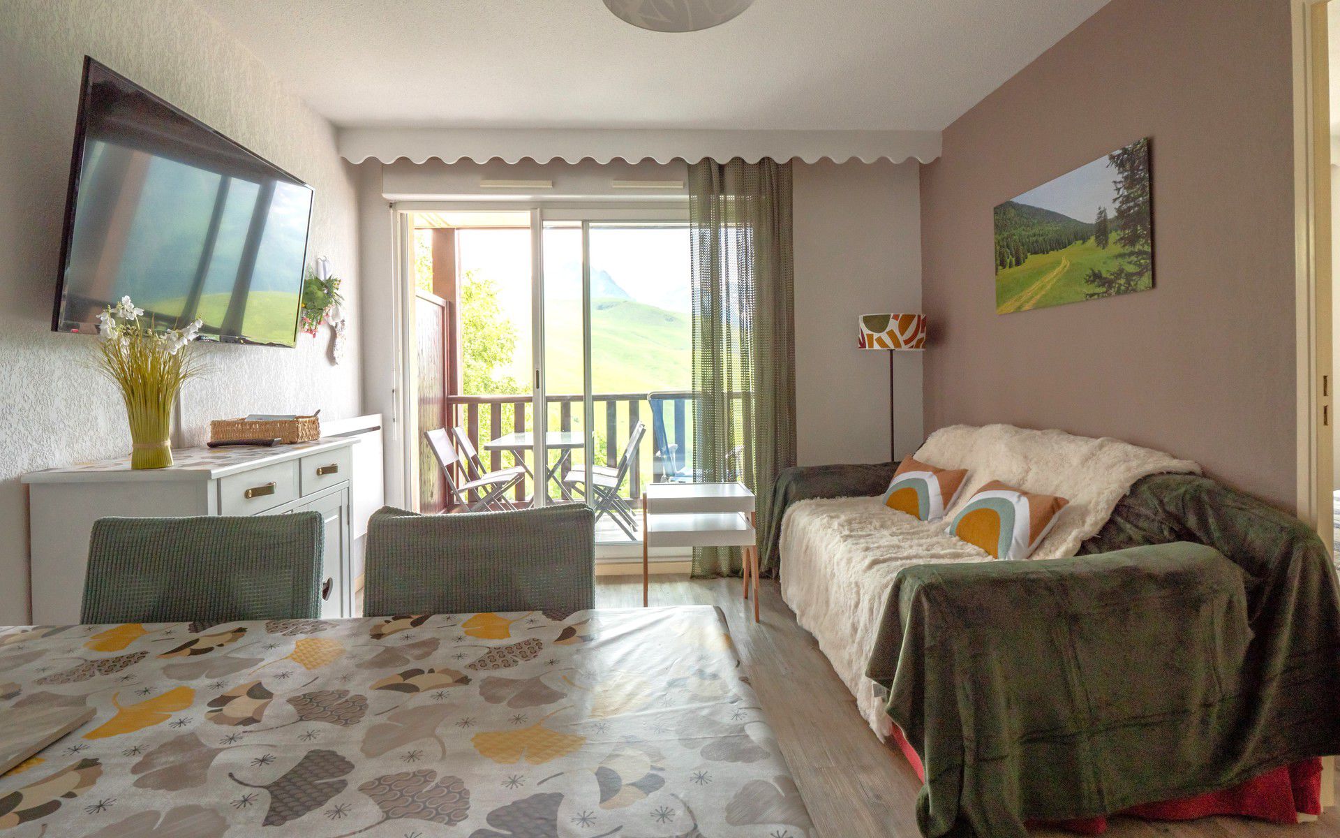 Appartement (env.35 m2) au 1er etage avec balcon et mobiliier de jardin, situe dans la residence Les Hauts de Peyragudes a 600 metres du pied de pistes (acces aux pistes assure par une navette gratuite).