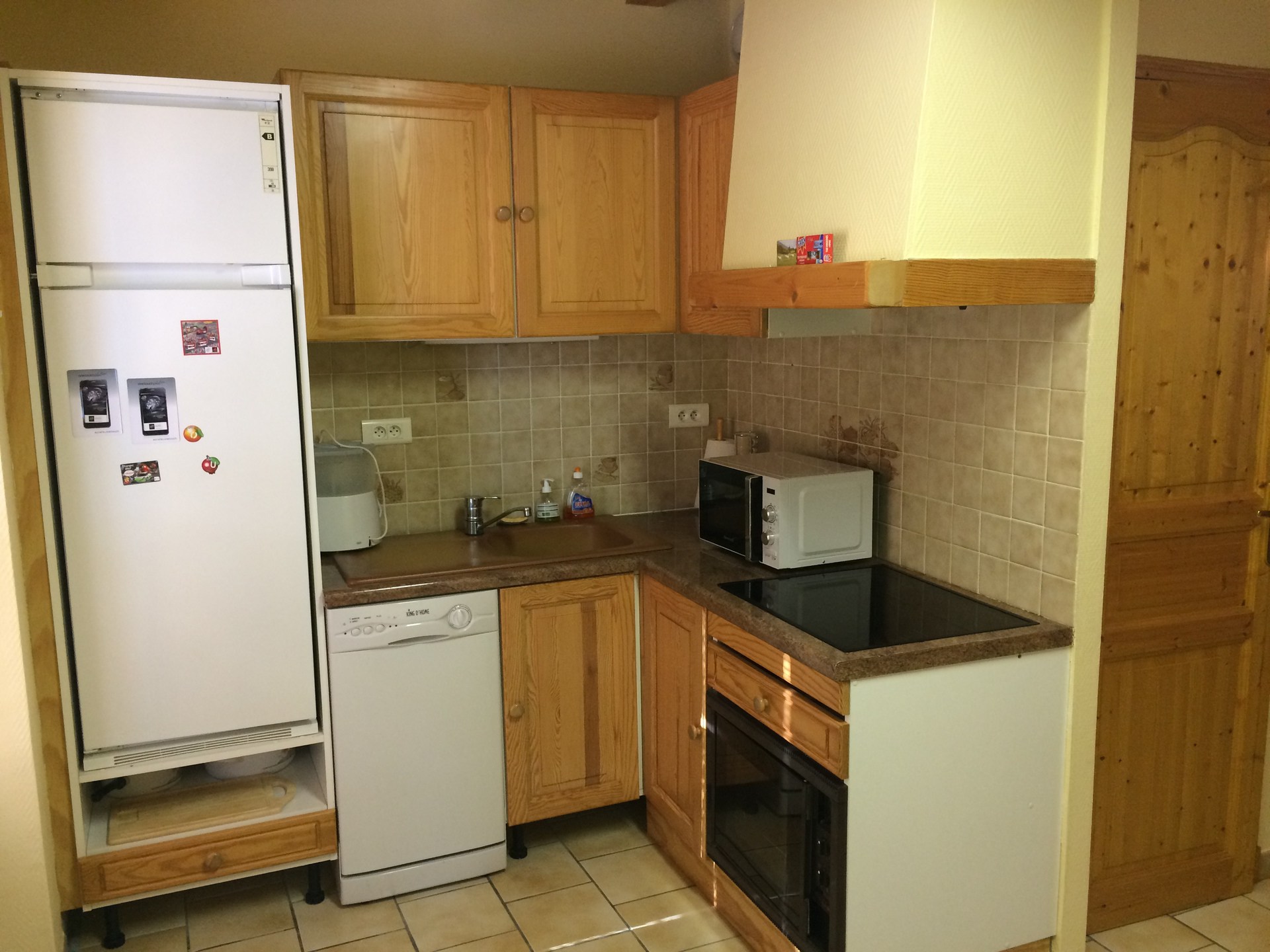 - coin cuisine equipee d'une plaque vitroceramique, micro-ondes, lave-vaisselle, four et refrigerateur-congelateur.