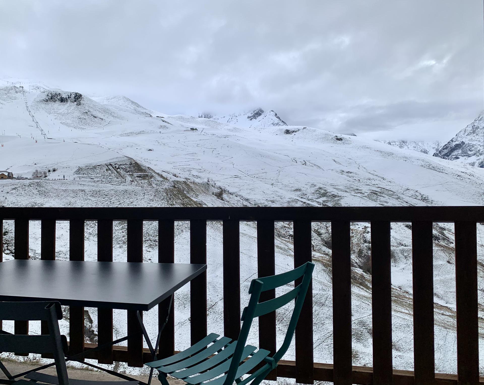 Studio au -1 etage (env.33m2) pour 4 personnes avec balcon a 400 metres des pistes.