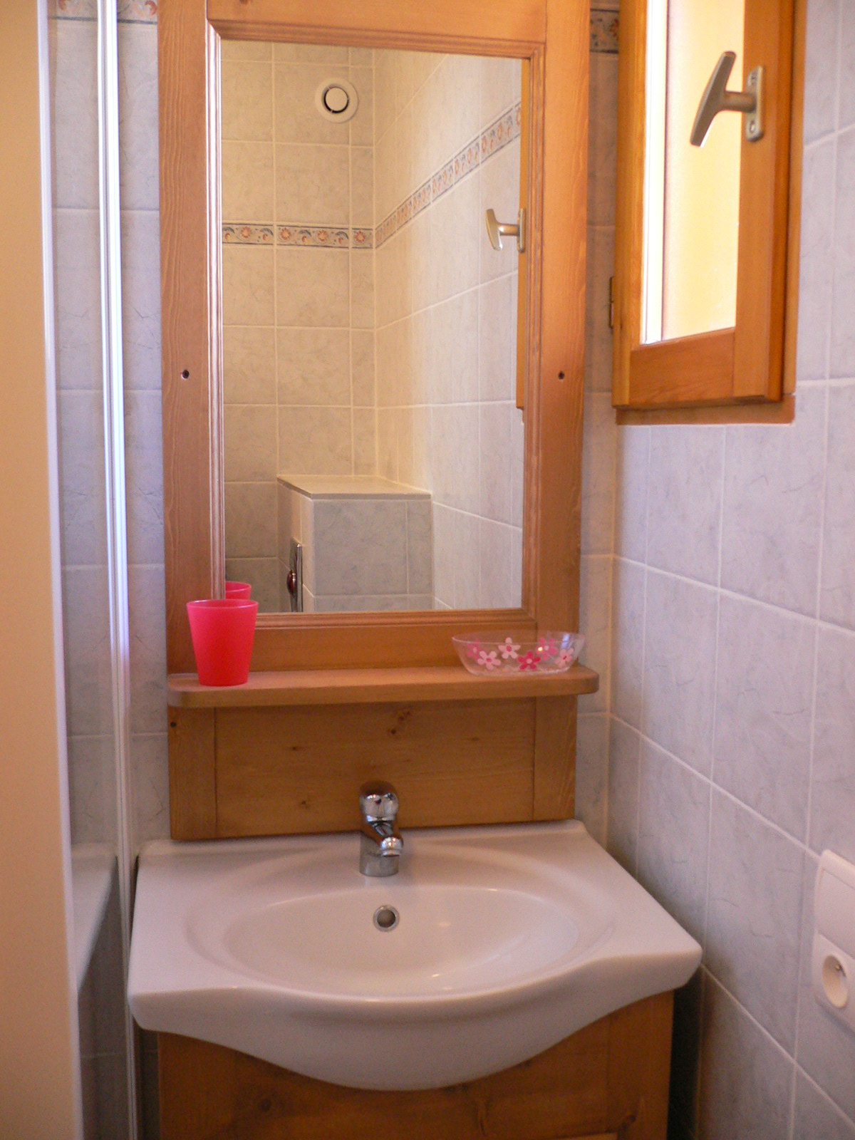 Salle d'eau (4m2) : lavabo, douche, seche-cheveux et WC.