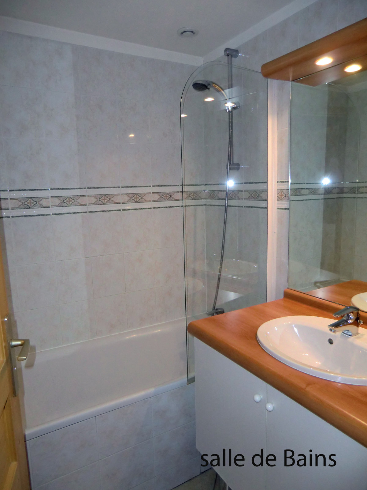 Salle de bains (2,5m2) : lavabo, baignoire et seche-cheveux. WC independant.