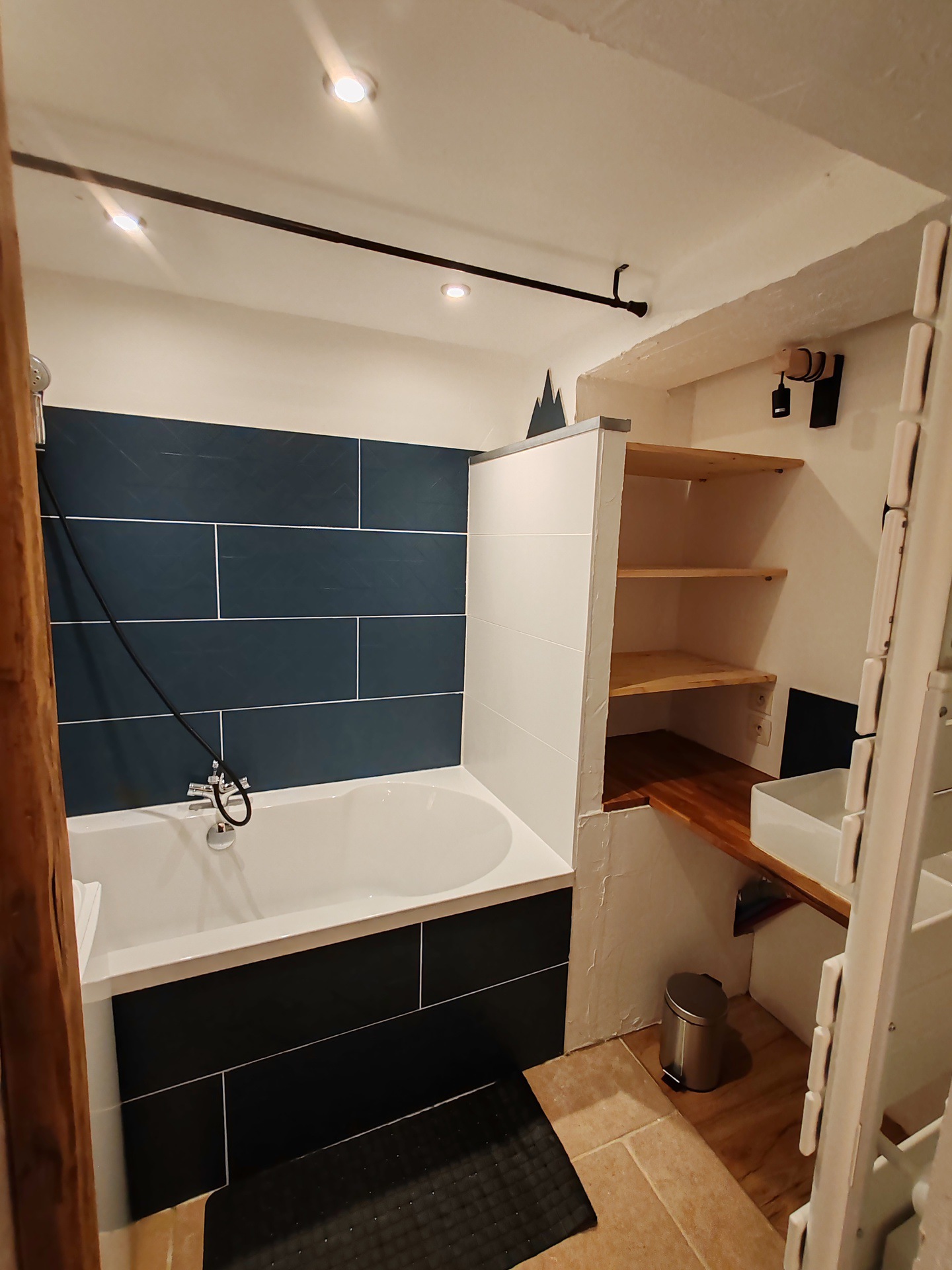 Salle de bains (4m2) : lavabo, baignoire, lave-linge. WC independant.