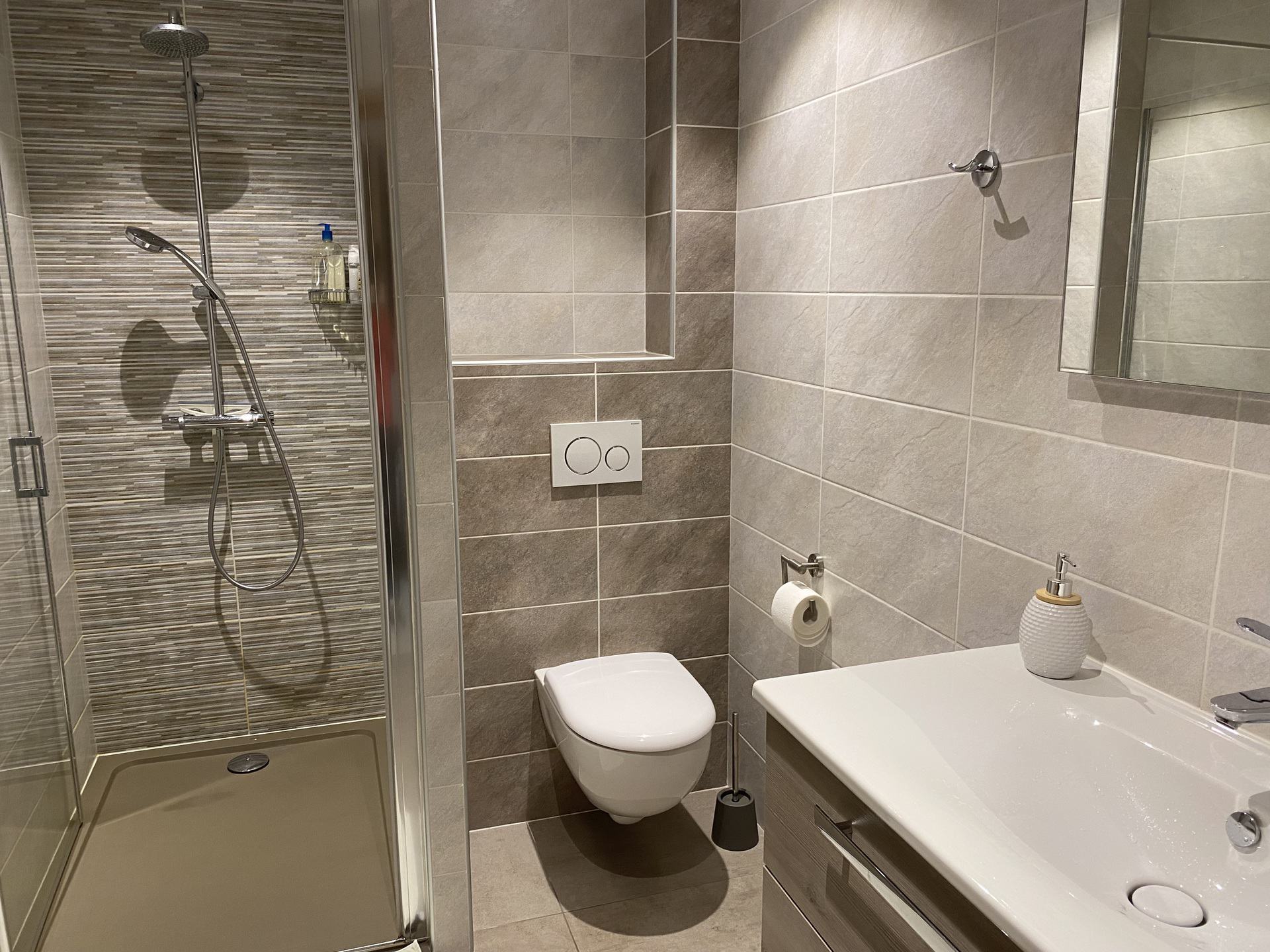 Salle d'eau 1 (Niv +1) : lavabo, douche, seche-cheveux et WC.